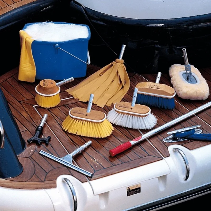 We use the best of quality products to preserve these exterior areas of the vessel with several steps that must be taken to properly detail the vessel. First, the entire vessel must be washed down inside and out, top to bottom including all storage compartments and lockers. Once dry, wax/polish is applied to all gel coat/painted surfaces down to the water line. Next all metals, soft goods, canvas and enclosure are treated with a specific product designed for the specific component. This is what we call “The Full Detail”